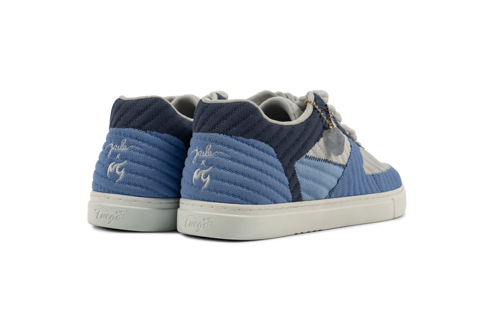 Discover our exclusive range of Fuego dance shoes, designed for comfort and style. Perfect for dancers of all levels, these shoes provide the support you need while allowing for graceful movement. Shop now to elevate your dance experience with our high-quality footwear. Fuego Low-Top i blå jade. Designed in collaboration with Jade Chynoweth, world-renowned dancer, actress and social media sensation, this eco-friendly sneaker features a raw Jade stone and a knit fabric texture made from recycled plastic water bottles. Vibrate higher in any environment when you rock Jade x Fuego, our earthiest collab.